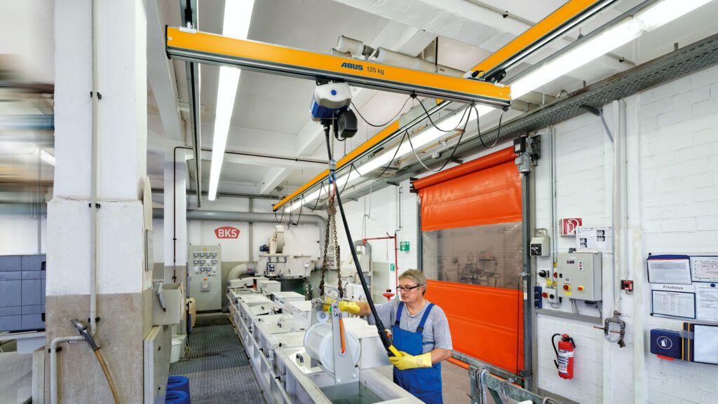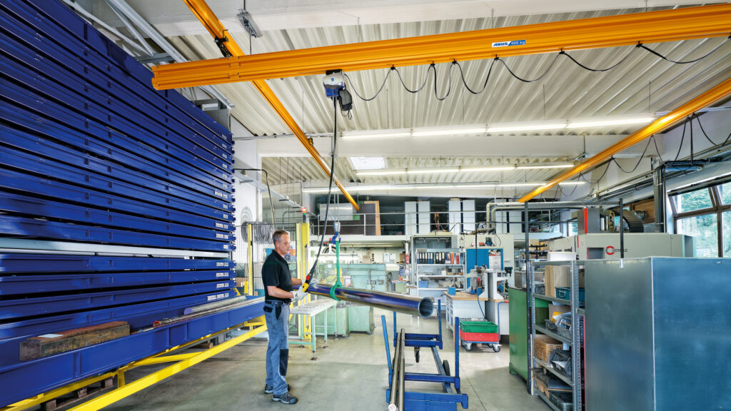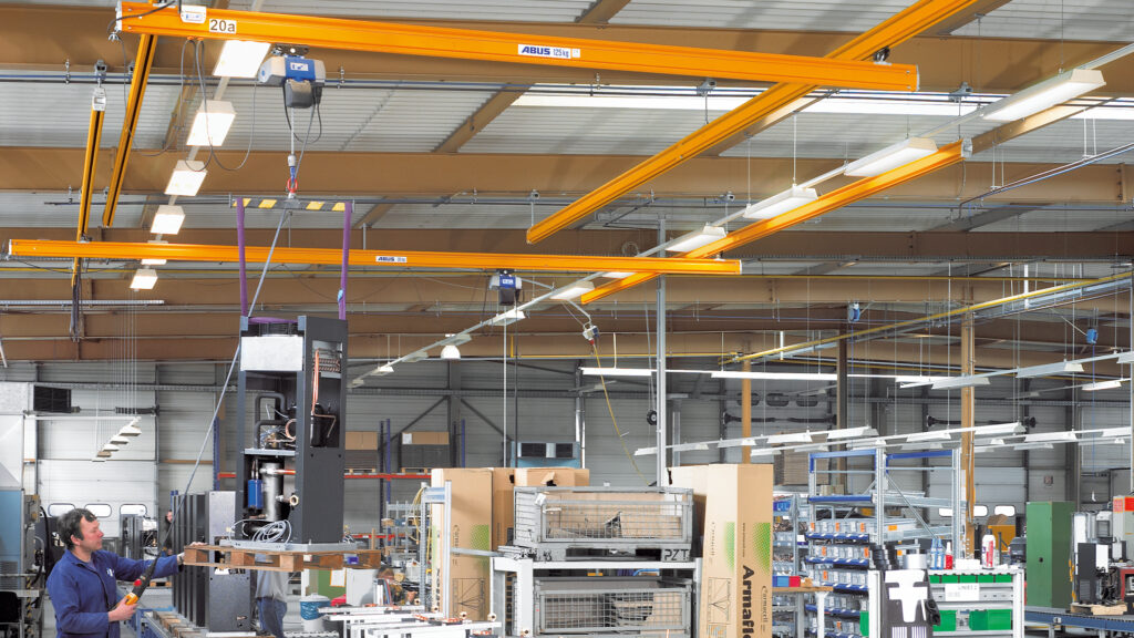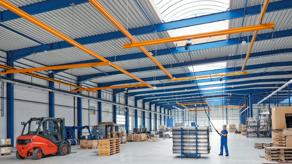 En lågbyggd enbalkstravers med en lyftkapacitet på upp till 1,25 ton och spännvidd upp till 10 meter (beroende på lyftkapacitet). ABUS enbalkstravers EHB är bäst lämpad för yttäckande transport av lätta laster. EHB har låg konstruktionshöjd, korta ändlägesmått och kan hantera stora upphängningsavstånd. Traversen har tillvalsmöjligheter så som strömbana, kablage via C-skena, och radiostyrning.