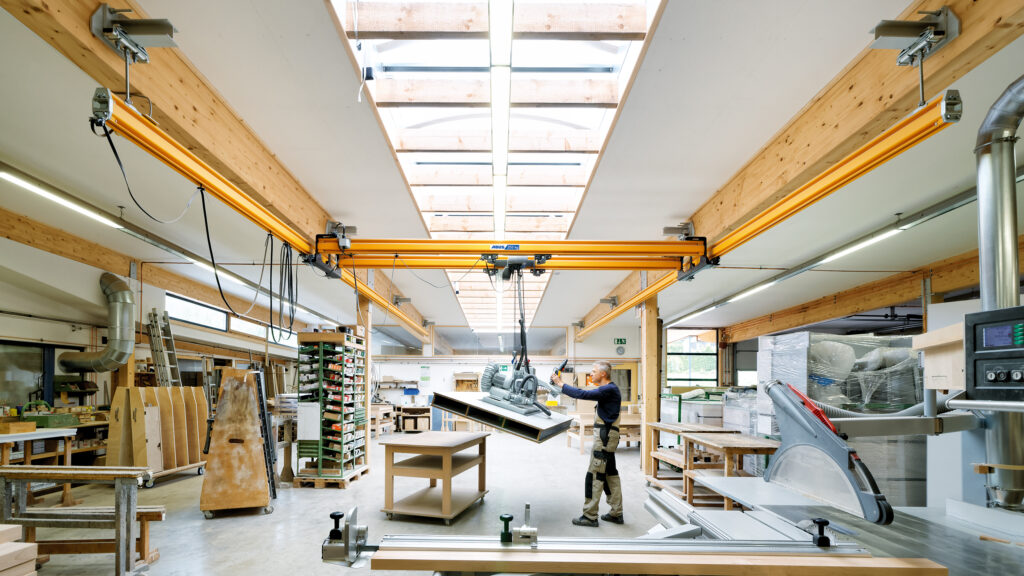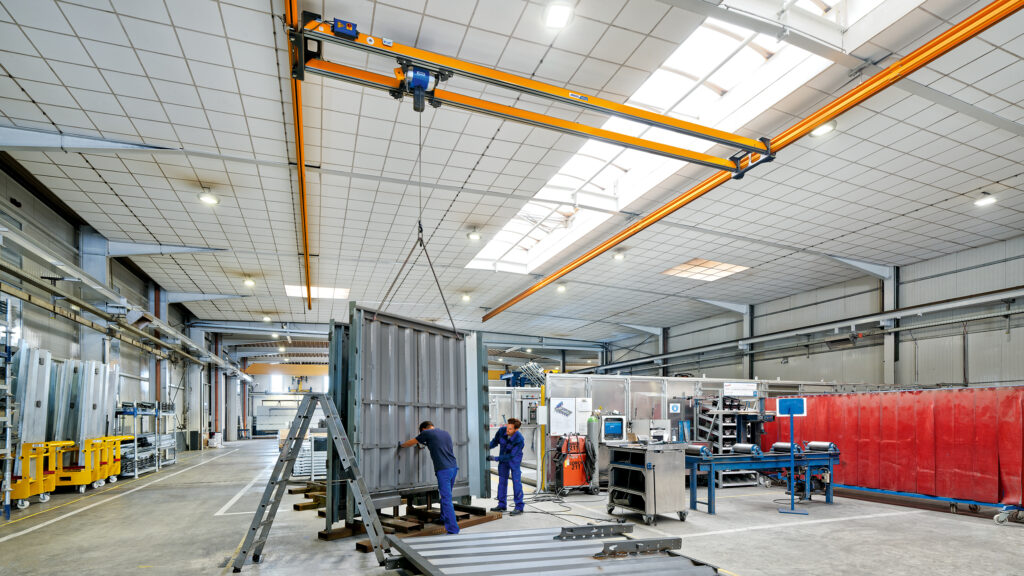 Mycket lågbyggd tvåbalkstravers med lastkapacitet upp till 2 ton och spännvidd upp till 8 meter (beroende på lyftkapacitet). ABUS tvåbalkstravers ZHB-X är bäst lämpad för yttäckande transport av stora laster och är ett bra alternativ om bygghöjden hos ZHB inte är tillräcklig. Tvåbalkstraversen är nämligen uppbockad mellan kranbanorna, och optimerar därav nyttjandet av hallens höjd, vilket skapar en optimal lyfthöjd. Traversen har tillvalsmöjligheter så som strömbana, elektriska åkverk för tvär- och längsåk, radiostyrning samt separat åkbart manöverdon.