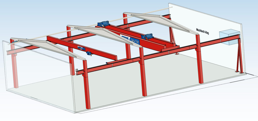 Tillbyggnaden är på 1 500 kvm, en nästan helt fyrkantig lokal med en storlek på 24 meter och en takhöjd på 10 meter som man ville kunna utnyttja maximalt. Machtech har tidigare samarbetat med Carlhag och bad om en offert på en travers på 16+16 ton, totalt 32 ton, en travers på 6,3 ton med traversbanor samt tre svängkranar för mindre lyft upp till 1 ton.