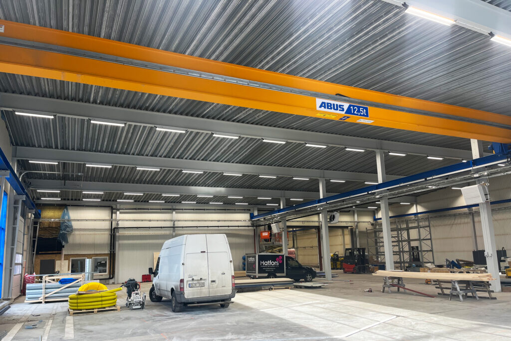 De två traversernas lyftkapacitet på 5 ton vardera har servat företaget väl genom åren. Men lyftbehoven har förändrats och idag behöver man klara att lyfta betydligt tyngre motorer och reservdelar till stora maskiner. När man nu har flyttat in i en större verkstadslokal på 3 000 kvm har traverserna kompletterats med en ABUS enbalks travers ELK med kranbana för lyft på upp till hela 12,5 ton.