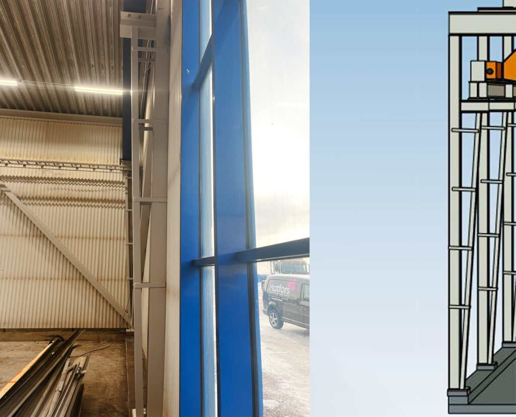 Att montera ny utrustning i en gammal byggnad kan vara knepigt och vid porten visade det sig vara trångt om utrymmet, både på bredden och på höjden. Önskemålet om en lite kraftigare kranbana gjorde att det krävdes extra förstärkningar. Precis som sist kom Carlhag ut för att på plats titta närmare på hur det hela skulle kunna lösas på ett enkelt och smidigt sätt.