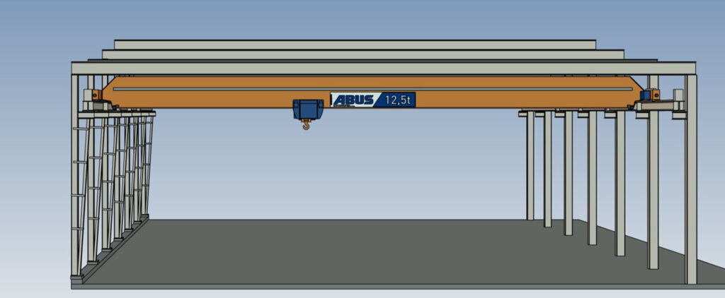 Maskingrupp: 1 Am/M4 - Kranbana 34 m med specialförstärkningar på pelarna, se bild och ritning.