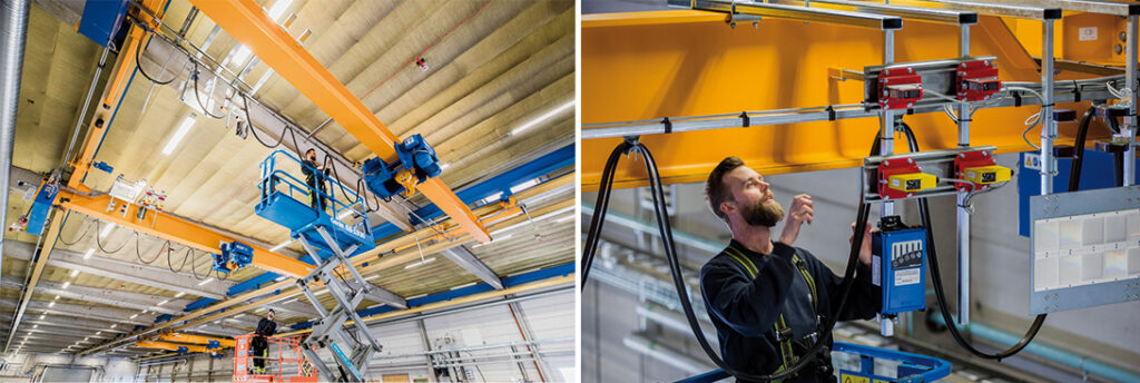 – Traverserna kommer att kunna köras i tandem med hjälp av ABURemote och är utrustade med automatiskt lastskydd för att inte komma närmare varandra än 5,5 meter, eftersom takstolarna annars skulle bli överbelastade.